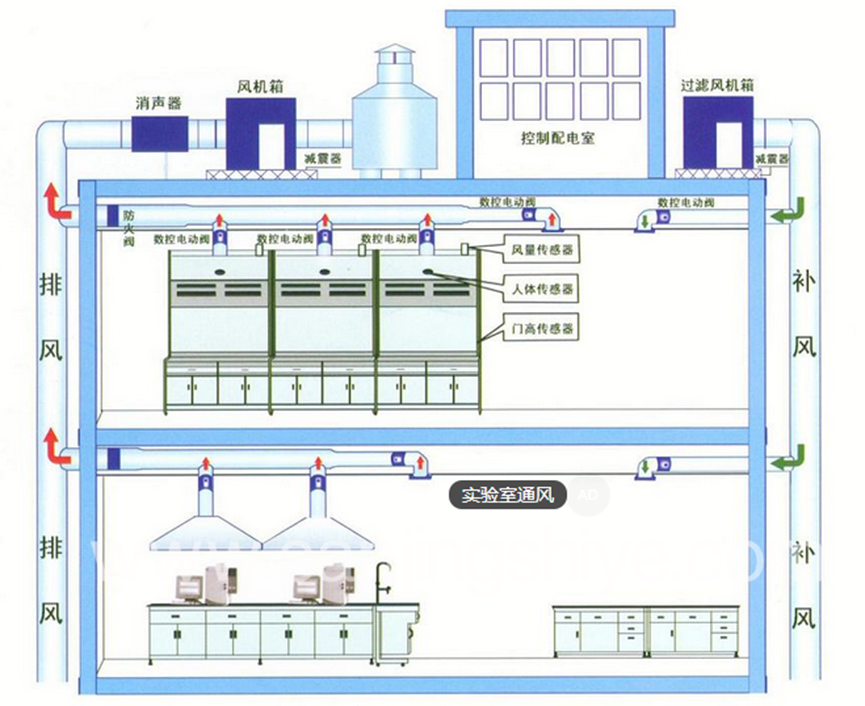 ⊙通風系統(tǒng)工程是潔凈間建設的關鍵,通風柜的效果好壞主要在于排風系統(tǒng)設計。